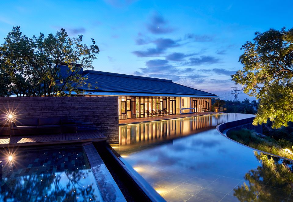 郑州裸心园度假村以华夏文脉,伏羲山景为特色,被洛阳、少林寺、开封等古都所环抱。拥有主题客房:崖景山院、温泉山院、山居别院、素心华筑,2-4房的山院均配备独立泳池、恒温温泉泡池、全套厨房设施、户外餐饮烧烤空间等。